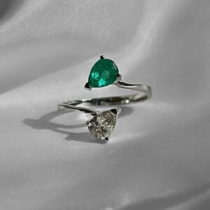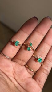 Anillo media banda de esmeraldas y zafiros