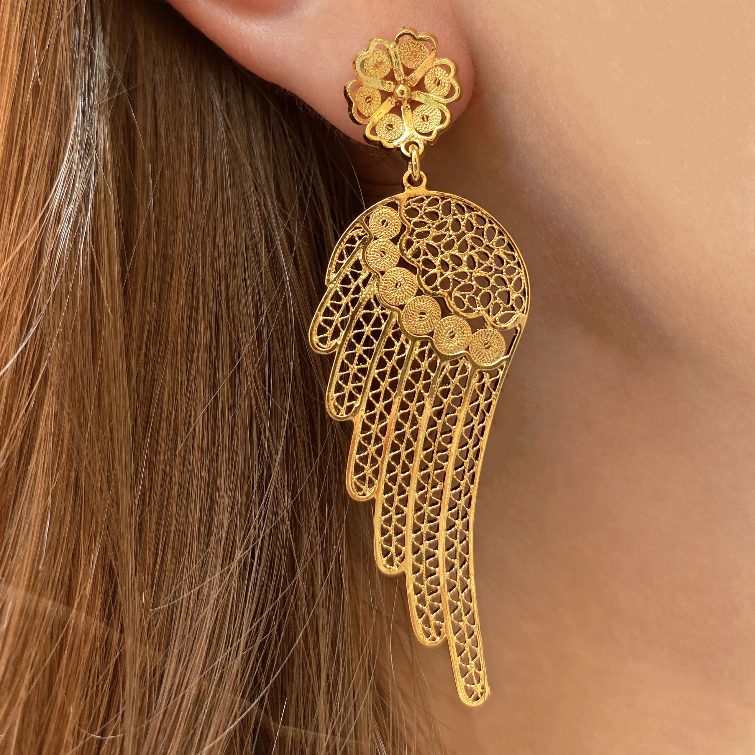 Arete tejido a mano técnica filigrana en plata ley 970 con enchape en oro sólido 24k