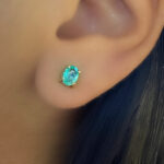 Arete estilo topo elaborado en oro solido de 18k con esmeraldas colombiana en corte ovalo 0.40 Ct aprox