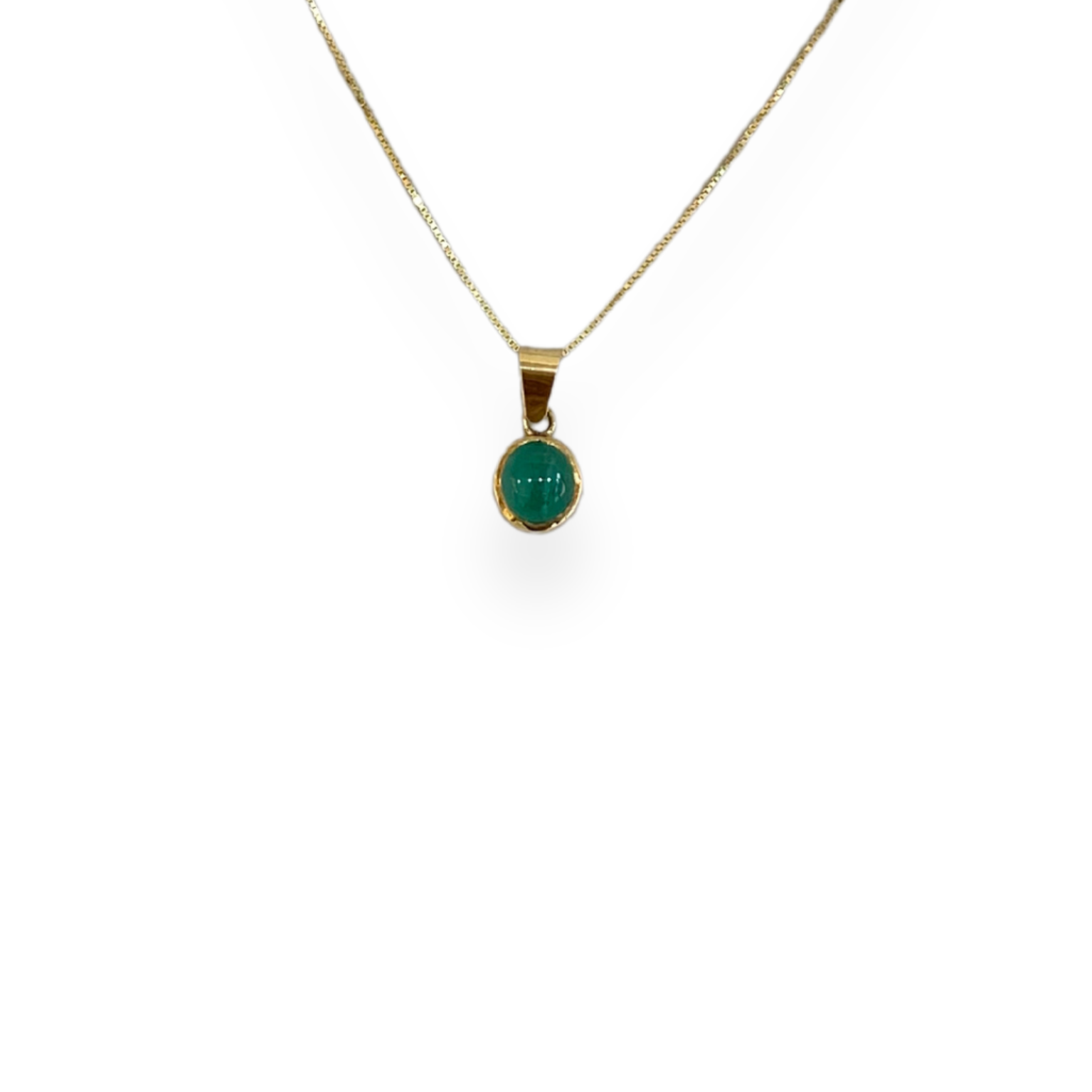 Dije elaborado en oro solido de 18k con una esmeralda colombiana corte ovalo cabujón 1.25 CT aprox
